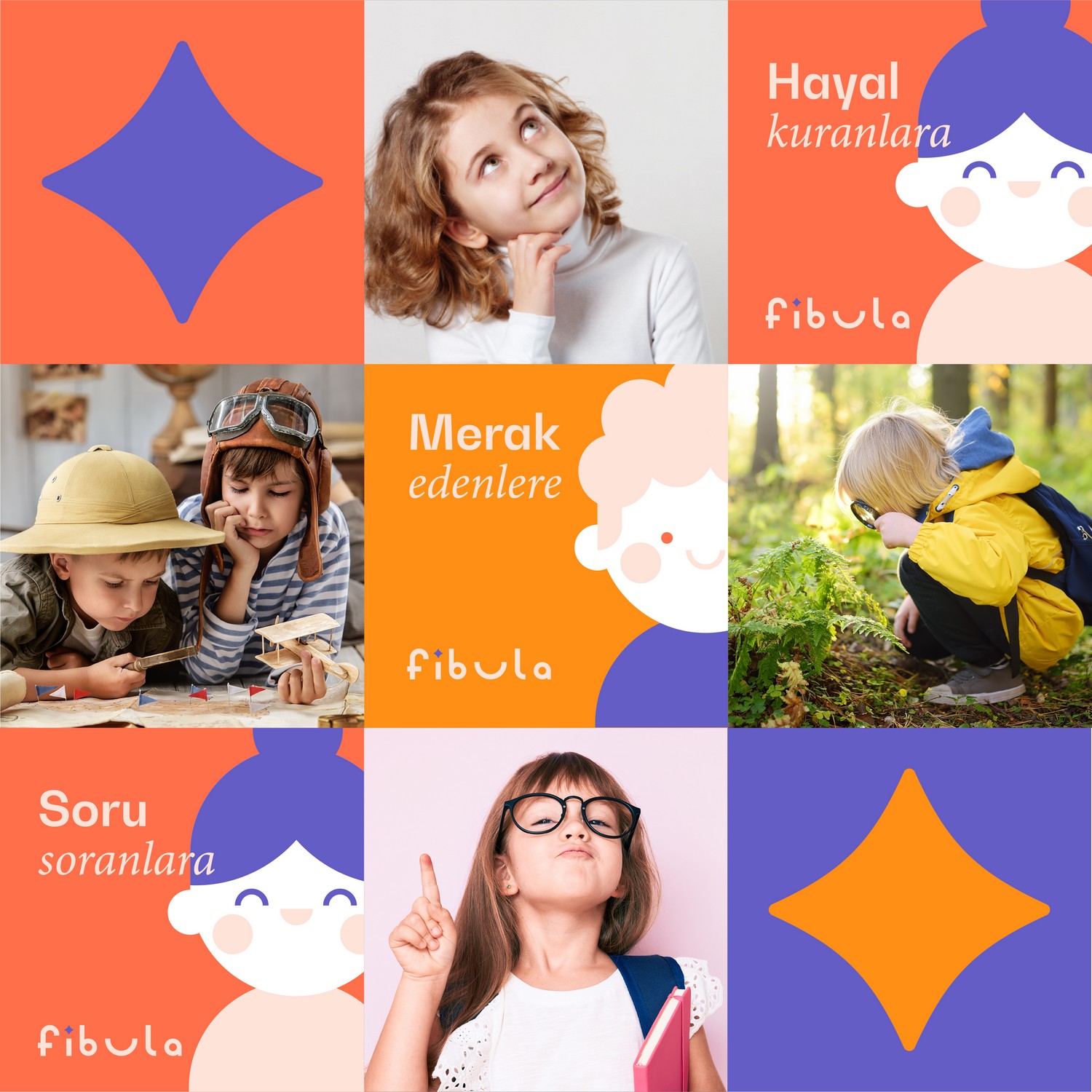 The brand identity for Fibula Kids was designed to feel curious, joyful, and inclusive.