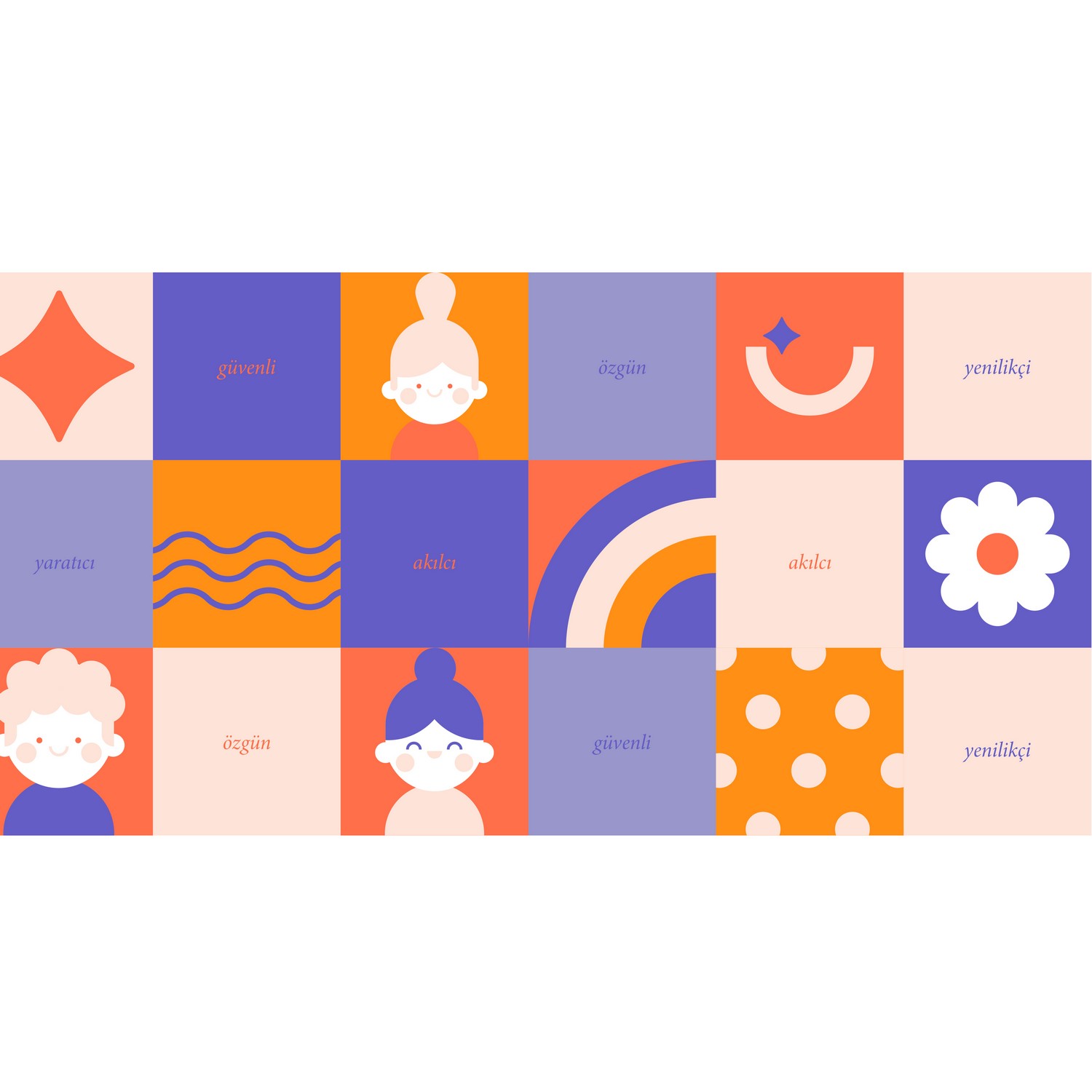 Simple shapes and expressive elements form a visual language that supports storytelling while maintaining consistency across all brand touchpoints.